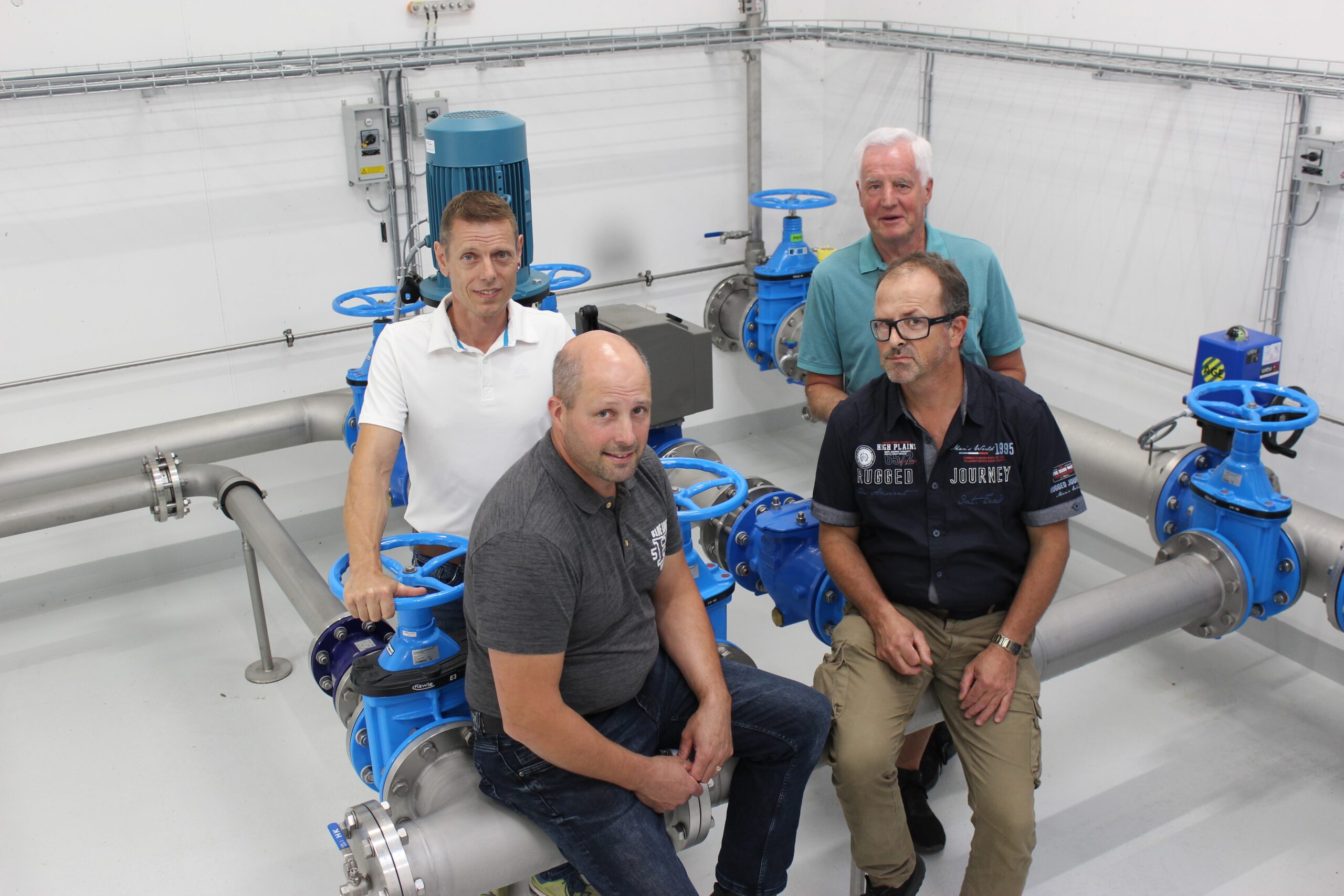 Kurt Schmid, Markus Widmer und Ruedi Eiholzer zusammen mit Wassermeister Hanspeter Koller (mit Brille).